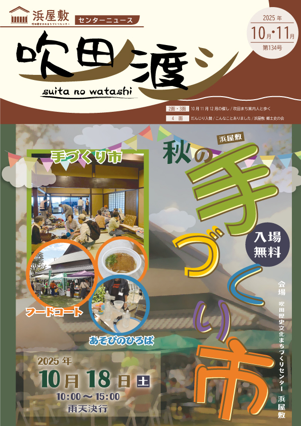 お知らせ センターニュース吹田ノ渡シ134号公開しました 2025年9月23日 【1面】浜屋敷 秋の手づくり市【2面・3面】10月・11月・12月の催し/吹田まち案内人と歩く【4面】だんじり入れ替え / こんなことありました / 浜屋敷 郷土史の会 センターニュース「吹田ノ渡シ」アーカイブ Tweet 関連