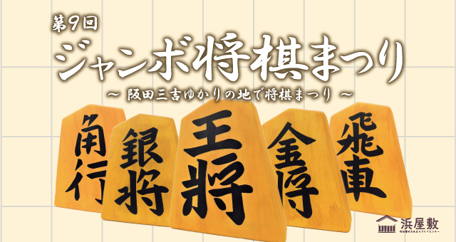 11月 24日月曜日|10:00 AM - 3:30 PM 第9回 ジャンボ将棋まつり 吹田歴史文化まちづくりセンター『浜屋敷』 南高浜町6-21 ~阪田三吉ゆかりの地で将棋まつり~ ☖将棋大会☖ 10:00~15:10ごろ 金… ¥1000